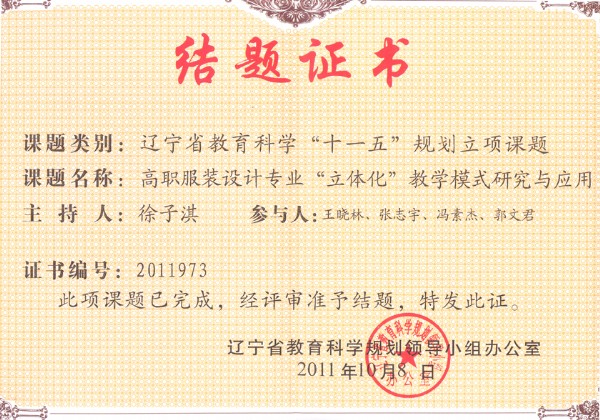 辽宁省教育科学“十一五”规划立项课题结题证书